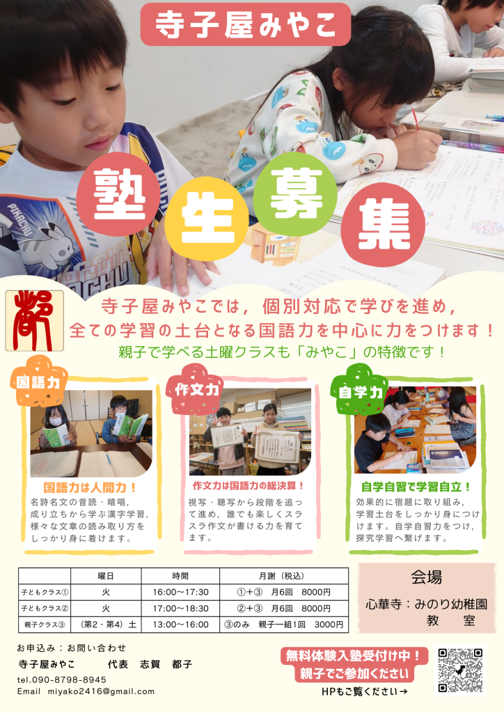 参加希望・質問のある方は,「寺子屋みやこ」